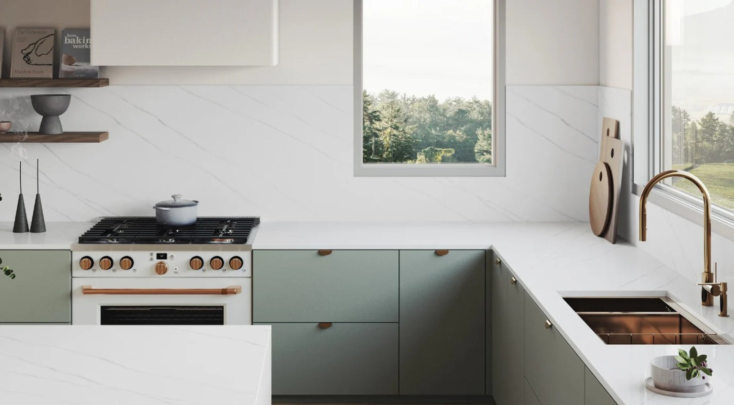 Unsere Wandanschlussprofile aus hochwertigem Mineralwerkstoff sind die perfekte Ergänzung für Ihr Küchendesign.